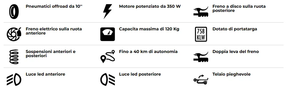 Il telaio in acciaio unisce robustezza e durata, mentre il manubrio in alluminio dona leggerezza e maneggevolezza. La sicurezza è una priorità: con il doppio sistema frenante (elettrico anteriore e a disco posteriore) che permette di muoverti in piena sicurezza, anche nel traffico più intenso.