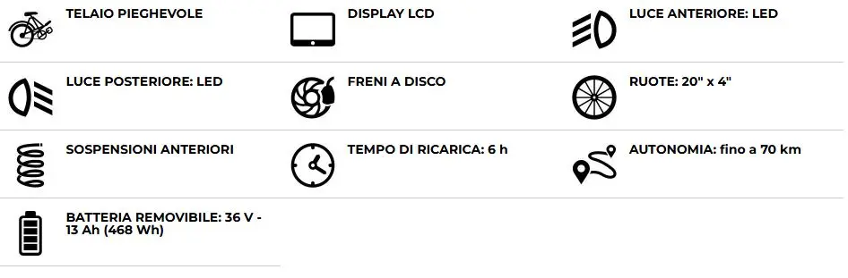 Si caratterizza per un design audace e moderno, con telaio ripiegabile, potenti luci LED e display LCD che ti permette di scegliere fra 5 modalità di guida, per sentirti a tuo agio sia su percorsi sterrati che in centro città.